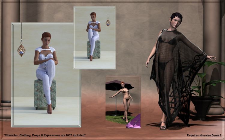 Hivewire has finally released their Dawn -version 2 at Renderosity and I was honored to create some basic poses for her.