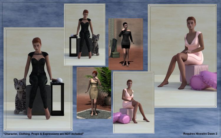 This is a general set of poses to get you started with this new character and create your Art starting from there. The poses are created for Poser 11++ and of course Daz3D since Hivewire Dawn 2 also works in DazStudio